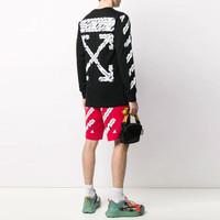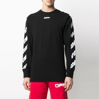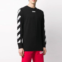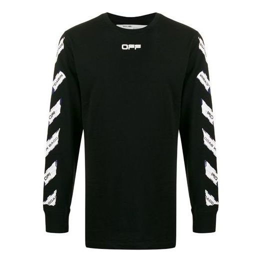 Off-White Airport Tape Printing Stripe Round Neck Black OMAB001S201850031088