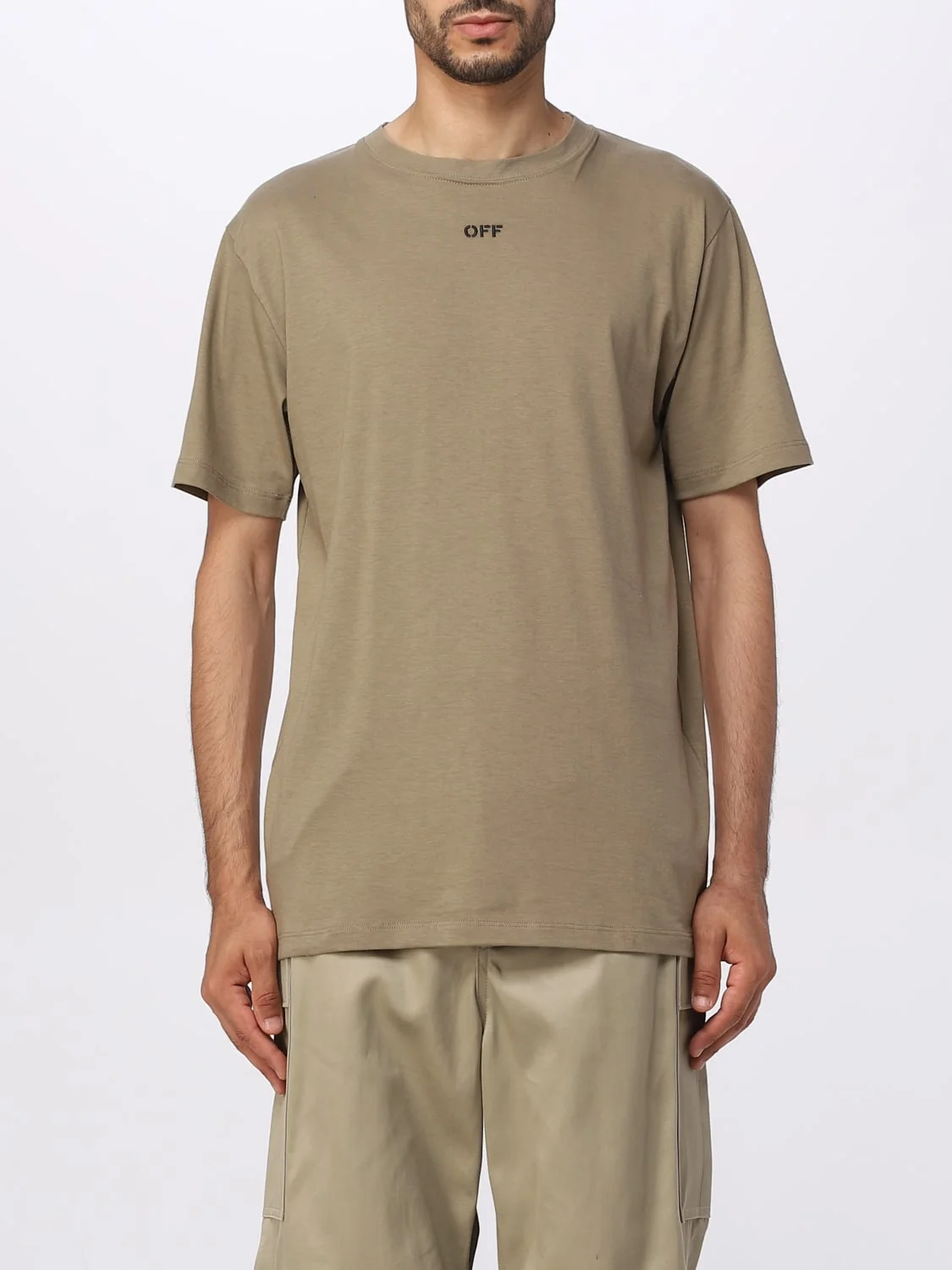DESCRIPTION - Style: Sporty - Logo: Contrasting - Model: Crewneck - Length: Long - Neckline: Crewneck - Shoulders: Relaxed - Sleeves: Short - Bottom: With straight hemline - Materials: Cotton - Pattern: Logo, Plain-colored DETAILS AND CARE Composition 100% POLYESTER SIZE AND FIT Sizes not available Size and fit Relaxed fit Designer code: OMAA027F23JER008 6110 Giglio Code: 393258 Designer: Off-White Collection: Off-White Men Category: Clothing Off-White