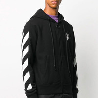 Off-White Hands Arrow Hooded Coat Men's Black OMBE001F20FLE0071001