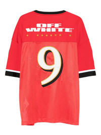 logo-print mesh T-shirt Highlights - Red - Mesh detail - V-neck - Number print - Short sleeves - Striped cuffs Imported Composition Fabric 100% Washing instructions Read Manufacturer Guidelines