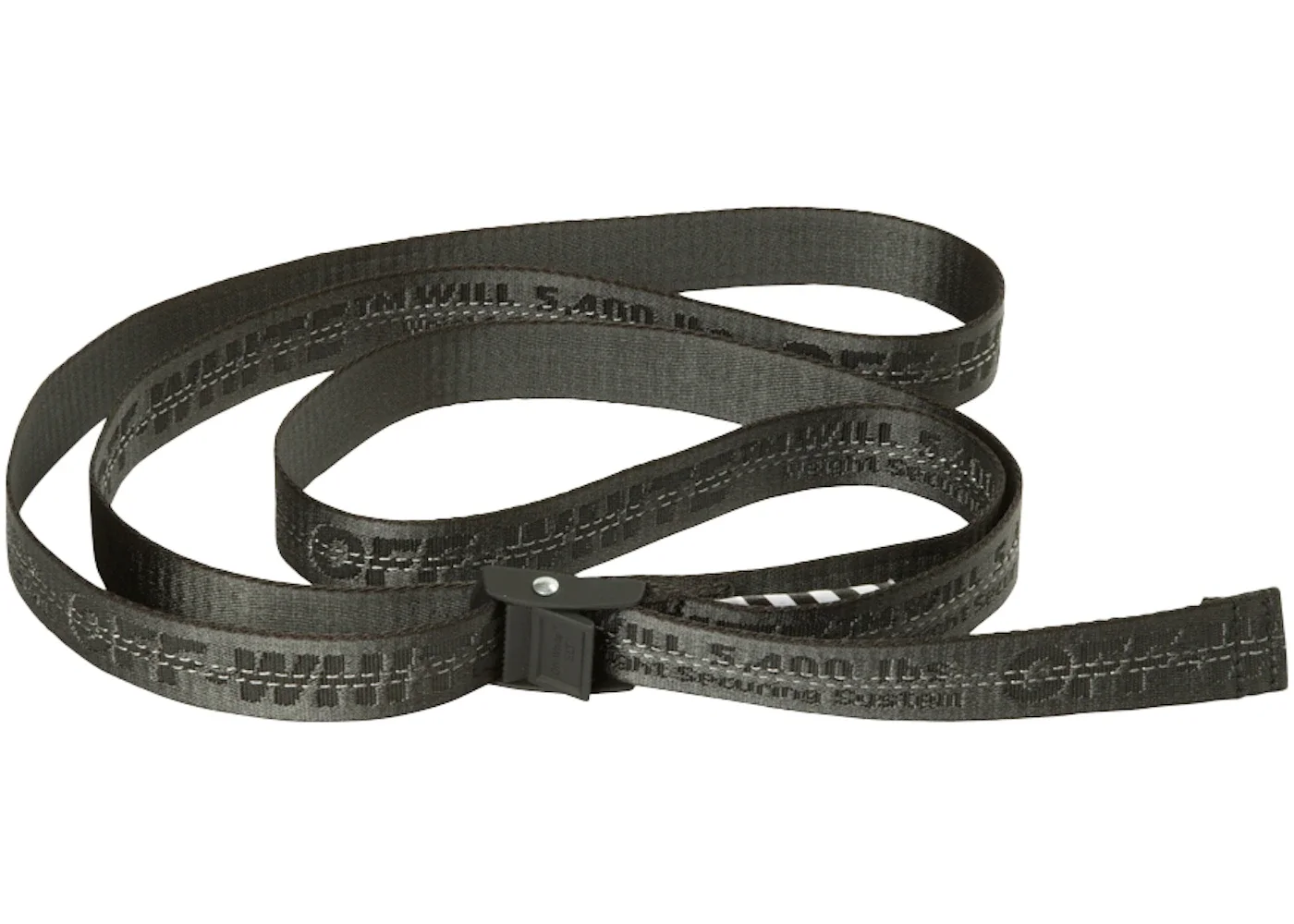 The Off-White Mini Industrial Belt SS19 Men's Black is available as part of the 2019 spring/summer collection. This unique accessory is designed and created by OFF-WHITE, a fashion brand led by late Virgil Abloh. The design represents the brand’s urban-inspired drawing inspiration and design language. It showcases a black color. The Off-White Mini Industrial Belt SS19 boasts a woven strip made of a long-lasting nylon material usually used in safety and industrial equipment. Some industrial-inspired details contributing to the unique aesthetic include yellow tape accents and metal hardware. The OFF-WHITE branding is the most outstanding feature in this design, printed in bold capital letters on the belt’s strap. One of the most impressive things about this creation is its adjustability, which facilitates easy adjusting and fastening based on your waist size, style, and preference. The Off-White Mini Industrial Belt SS19 Men's Black was released on June 14th, 2018, at a retail price of $190. - Season SS19 - Color Black - Retail Price 190 - Featured false