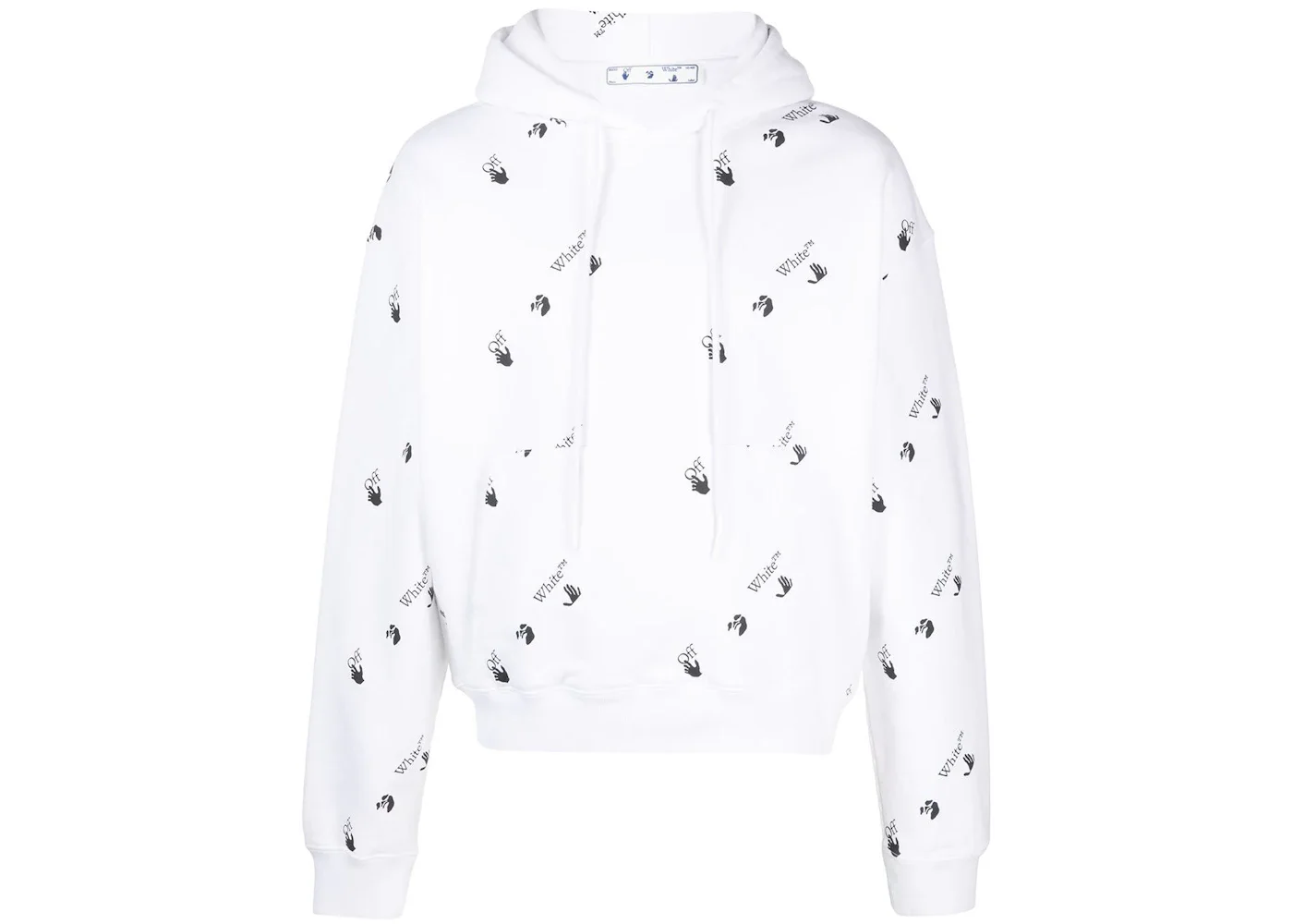OFF-WHITE Oversized Fit Allover Logo Hoodie White/Black