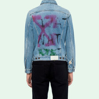 Off-White Spray Paint Graffiti Jacket Men Blue OMYE005E193860457128