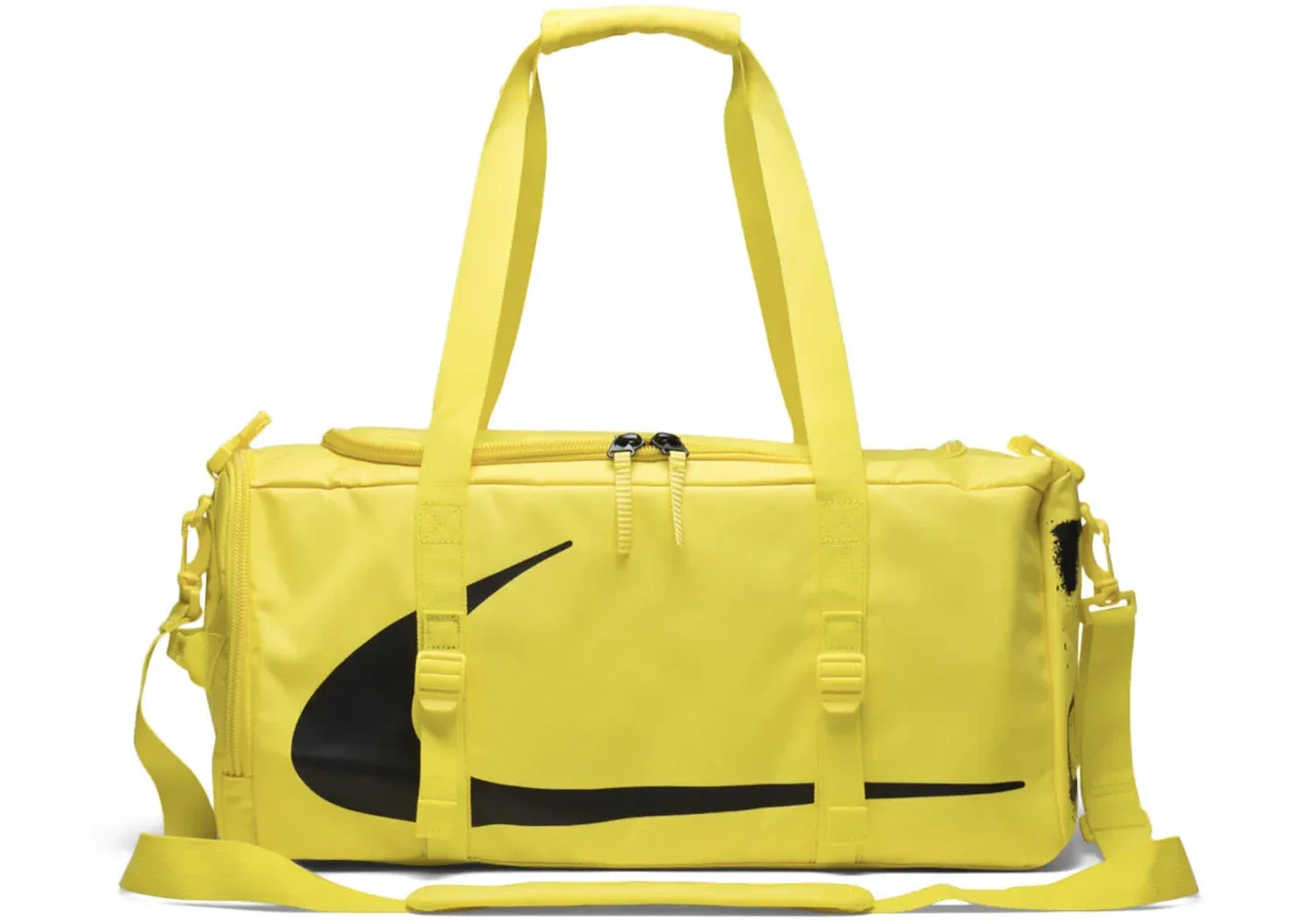The OFF-WHITE x Nike Duffle/Waist Bag Combo Opti Yellow is part of a collaboration between Nike and Off-White, a luxury fashion label founded by the late Virgil Abloh. Both the duffel bag and the waist bag feature a bright colorway of Opti Yellow with black accents. The duffel bag takes on a classic gym bag silhouette and measures 61 centimeters long, 30 centimeters wide, and 33 centimeters tall. A zipper closure provides access to a large compartment, and there are also two zipper closures on each end of the bag. A bold Swoosh runs down the center, and a four-way arrow painted in a graffiti style adorns the end of the bag. The waist bag offers three separate storage areas and displays a black Swoosh across the front. Our StockX experts appreciate how both bags come in the same colorway. The OFF-WHITE x Nike Duffle/Waist Bag Combo Opti Yellow was released on February 6th, 2020, and retailed at $250. - Season SS20 - Color Opti Yellow - Release Date 2020-02-06 - Retail Price 250 - Featured false