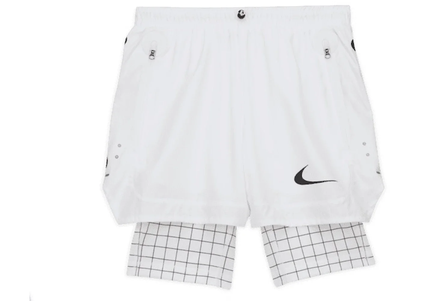 These collaborative Off-White x Nike Shorts were released in July of 2021 alongside a black pair of shorts with the same design. Off-White and Nike's July 2021 collection included eight new apparel items and marked the first time that the two companies had worked together in over a year. This pair of shorts features a two-in-one design, delivering Off-White x Nike branded bottoms with a built-in second layer. Off-White and Nike's white Grid Shorts were released at the retail price of $100 on July 23rd, 2021. - Season SS21 - Color White Grid - Release Date 2021-07-23 - Style CU2502-100 - Retail Price 100 - Featured false