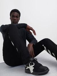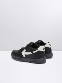 Low "Out of office" sneakers in black with white arrow at side. Off-White™ logo at back. Black rubber sole. Black lace-up closure. Virgil Abloh—Off-White’s founder and creative director—wanted to create a tennis shoe with a late 1980’s and early 1990’s aesthetic, that could be worn all-day-every-day. The result: a low-top silhouette with hybridized street, basketball and running influences. The “OUT OF OFFICE” sneaker features a contrasting outsole with translucent gel insets, classic perforated toe vamps, a ribbed heel and a recontextualized logo. Please note that this item should not come into contact with water. MATERIALS Outer: 100% Leather Lining: 14% Leather Lining: 86% Polyester Sole: 100% Rubber FITTING Bust 0cm Height 0cm Hips 0cm Waist 0cm