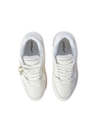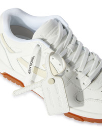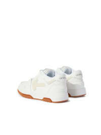 White low Out Of Office leather sneakers featuring white label and white arrows at sides. White and beige rubber sole. MATERIALS Lining: 14% Leather Lining: 86% Polyester Outer: 89% Leather Outer: 11% Polyester Sole: 100% Rubber FITTING Bust 0cm Height 0cm Hips 0cm Waist 0cm