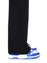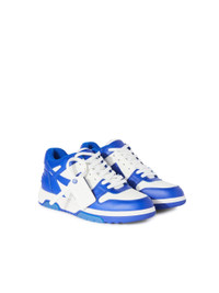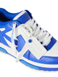 White and blue outlined Out Of Office Sneakers with light blue arrows at sides.Blue label datail. White laces and tonal rubber sole MATERIALS Lining: 82% Recycled Polyester Lining: 9% Polyurethane Lining: 9% Nylon Outer: 11% Recycled Polyester Outer: 89% Leather Sole: 100% Rubber FITTING Bust 0cm Height 0cm Hips 0cm Waist 0cm