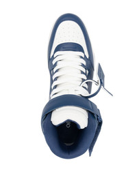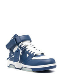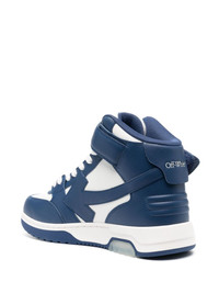 Out Of Office mid-top sneakers Off-White's signature Out Of Office sneakers are distinguished by the iconic Arrows motif and removable Zip Tie tag. The familiar silhouette is reimagined here in a white and blue colourway. Highlights - Blue/white - Leather - Two-tone design - Signature arrows motif - Signature zip tie tag - Round toe - Perforated toebox - Front lace-up fastening - Ankle touch-strap fastening - Branded heel counter - Branded insole - Flat rubber sole - Due to the dyeing process used, this product must not come into contact with water. Imported Composition Outer: Polyester 100% Sole: Rubber 100% Lining: Fabric 100% SIZE & FIT Measurement HEEL 1.37 in(3.5 cm) HEIGHT 3.93 in(10 cm) Sole height 0.98 in(2.5 cm)