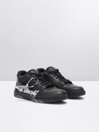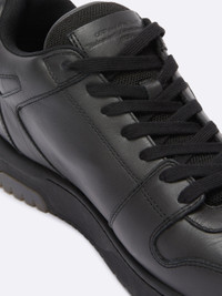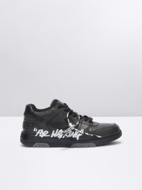 Black "OUT OF OFFICE" sneakers featuring “FOR WALKING” text and arrow on the side. Off-White™ logo on the back. Tonal rubber sole. Black lace-up closure. Virgil Abloh—Off-White’s founder and creative director—wanted to create a tennis shoe with a late 1980’s and early 1990’s aesthetic, that could be worn all-day-every-day. The result: a low-top silhouette with hybridized street, basketball and running influences. The “OUT OF OFFICE” sneaker features a contrasting outsole with translucent gel insets, classic perforated toe vamps, a ribbed heel and a recontextualized logo. MATERIALS Outer: 100% Leather Sole: 100% Rubber Lining: 100% Fabric FITTING Bust 0cm Height 0cm Hips 0cm Waist 0cm