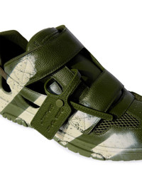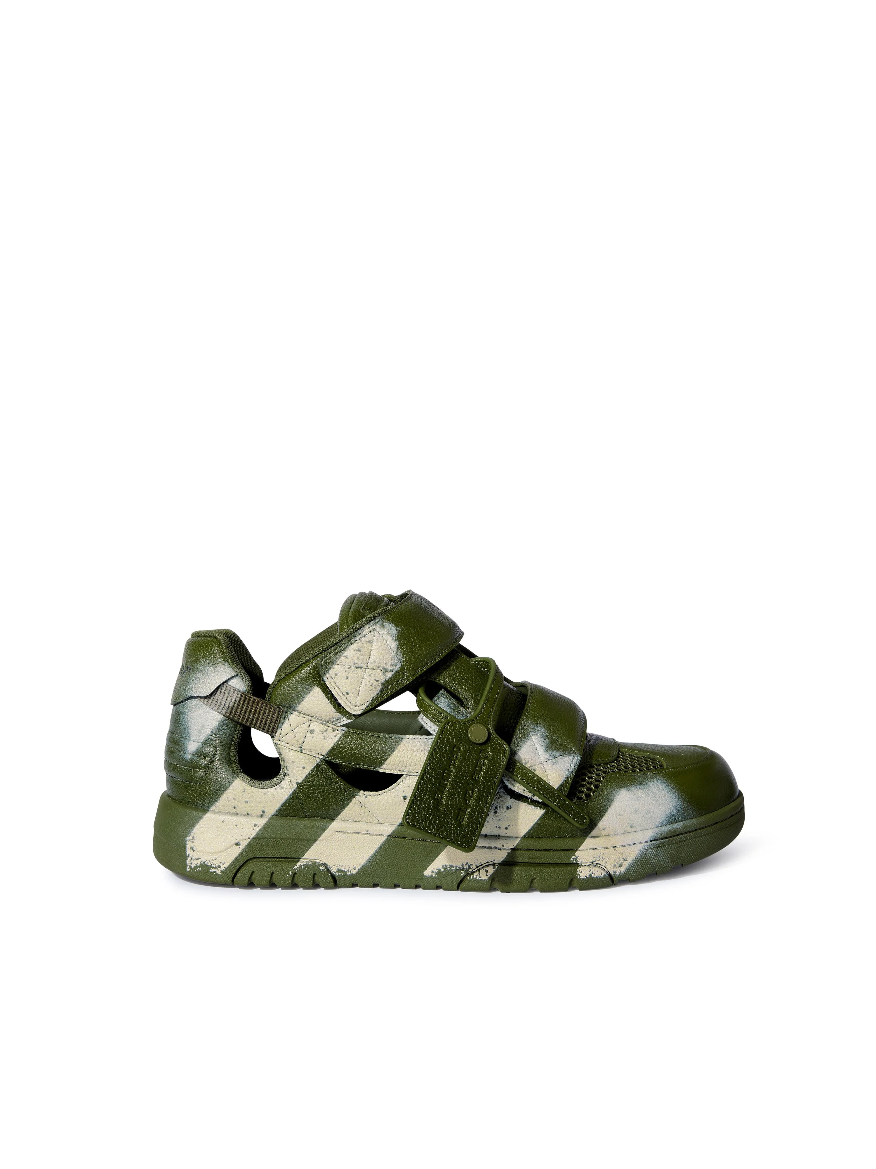Part of the SS25 "DUTY FREE" runway collection, these Out Of Office sandals are constructed with a leather upper and mesh panels. They feature a double strap closure and signature diagonal stripes sprayed on the sides. Complete with a "ZIP TIE" tag. DETAILS - MOMO WEARS SIZE 44 HEIGHT: 6' 1” (185 CM) BUST: 37” (94 CM) WAIST: 29“ (74 CM) HIPS: 37” (96 CM) - Calf Leather 100% , Fabric 100% , Rubber 100% - Code: OMIA29SZ25LEA0015603