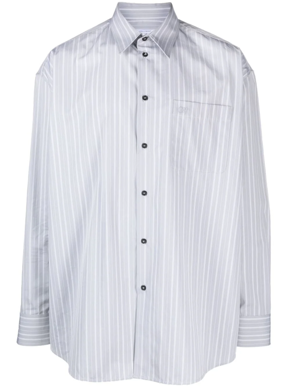 oversized striped cotton shirt Off-White's street-style take on classic shirting is spotlighted in this design. Cut from cotton to an oversized silhouette, it plays host to minimalist stripes. Highlights - White/grey - Cotton - Vertical stripe print - Classic collar - Front button fastening - Long sleeves - Chest patch pocket Made in Italy Composition Cotton 100% SIZE & FIT Model measurements Height 6 ft 2 in(1.89 m) Bust/Chest 39.76 in(101 cm) Hips 37.4 in(95 cm) Waist 29.92 in(76 cm) FittingInformation Designed for a relaxed fit, this piece allows for comfort and movement when worn Made from a midweight non-stretch fabric This piece fits true to size – take your usual size