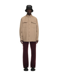 Beige long sleeves over shirt featuring flat pockets and tonal buttons at front. Spread collar. MATERIALS 100% Polyester FITTING Model Alexandre Sewa wears size 48 Height: 5' 11" (182 cm) Chest: 32" (81 cm) Waist: 26" (68 cm)