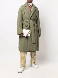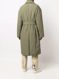 padded double-breasted coat Off-White adds an unexpected twist to this classic olive green coat. Designed with timeless double-breasted front fastening and notched lapels, this piece is punctuated by its distinct padded silhouette, aligned with the label's convention-defying style. Made in Italy Composition Lining: Polyester 100% Outer: Polyamide 100% SIZE & FIT Model measurements Height 6 ft 2 in(1.89 m) Bust/Chest 35.43 in(90 cm) Hips 36.61 in(93 cm) Waist 28.74 in(73 cm) Washing instructions Machine Wash