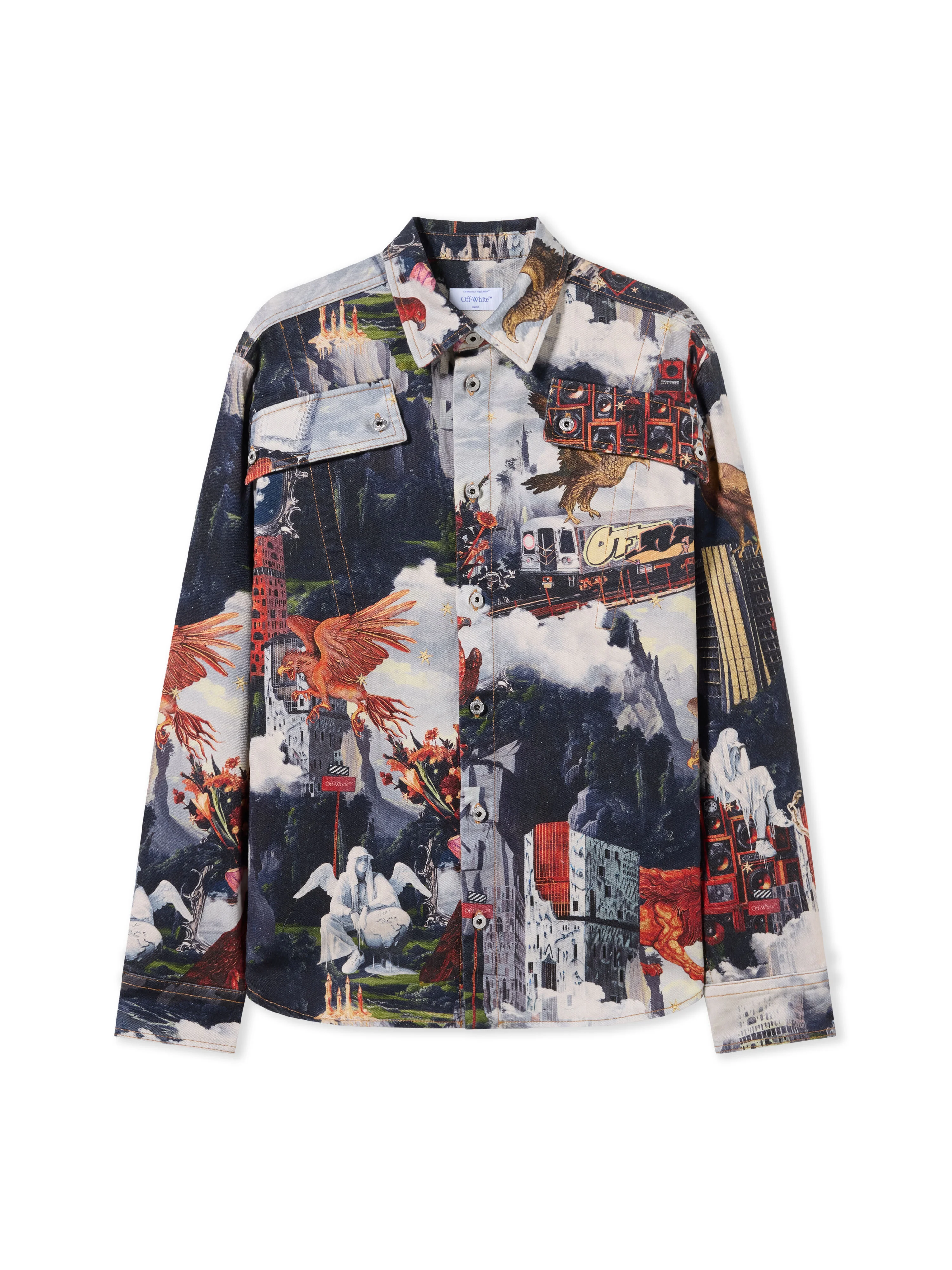 Introducing the World Paint Milit Shirt, a striking piece that merges artistic expression with urban sophistication, crafted from premium textiles for a lasting impression. - All-over graphic print for an impactful visual statement - Button-front fastening ensures a classic silhouette - Conventional collar complements the structured design - Long sleeves with buttoned cuffs for a refined finish - Patch pockets at the chest add functional detail - Rear yoke enhances structural integrity - Crafted for a relaxed fit with meticulous attention to detail - Made in Italy DETAILS - Material: 1% Elastane 99% Cotton - Code: OMYD05PF25DEN0024200
