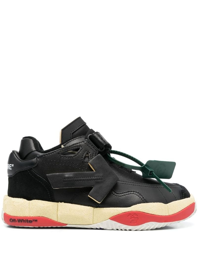 Puzzle Couture panelled sneakers Off-White draws inspiration from retro sports styles in these chunky sneakers. Boasting a panelled upper with mesh, leather and rubber details, they're decorated with a green luggage tag and tonal arrow at the side that nod to the brand's covetable codes. Imported Composition Lining: Cotton 100% Outer: Leather 47%, Polyester 35%, Rubber 10%, Polyurethane 8% Sole: Rubber 100% SIZE & FIT Measurement HEEL 1.6 in(4 cm) Sole height 1.4 in(3.5 cm)