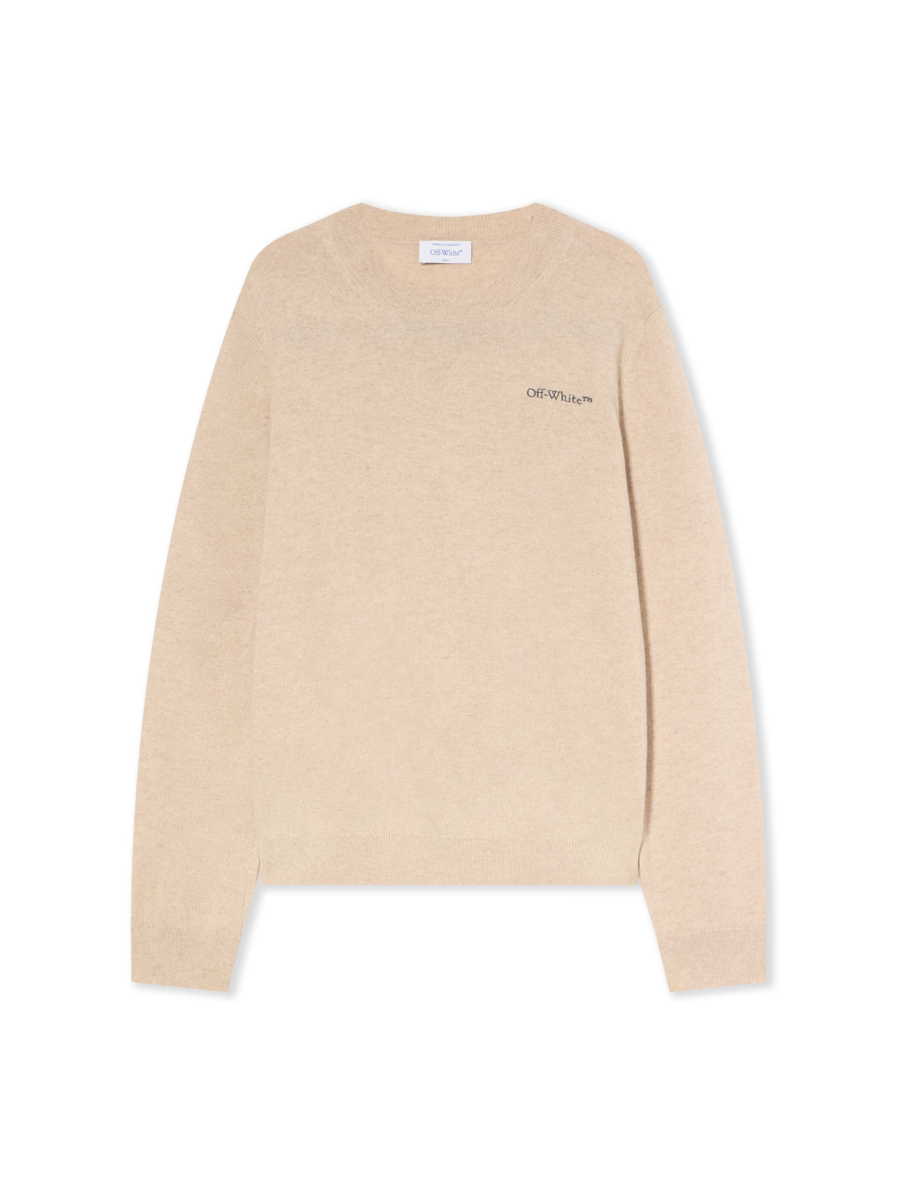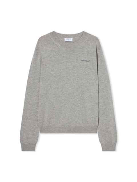 <p>Crafted in a refined knit, this crewneck sweater from Off-White™ features a minimalist design with a distinctive back quote, embodying urban sophistication.</p><ul type="circle"><li>Ribbed crewneck construction</li><li>Signature Off-White™ front logo</li><li>"TOUCH CAREFULLY" quote on the back</li><li>Long sleeves with ribbed cuffs</li><li>Fine knit fabric for luxurious comfort</li><li>Made in Italy</li></ul> DETAILS - Material: 100% Cashmere - Code: OMHE20OF25KNI0016111