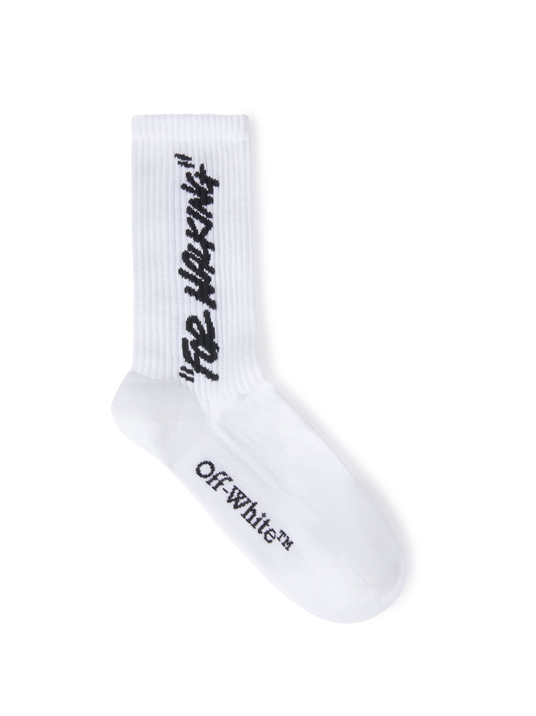 These mid-height ribbed socks are made from a cotton blend with lycra. They feature a signature quote on the cuff and logo on the sole. Made in Italy. MATERIALS 70% Cotton 27% Polyamide 3% Elastane FITTING Bust 0cm Height 0cm Hips 0cm Waist 0cm