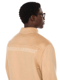 <p>The Quote Military Overshirt merges urban aesthetics with meticulous construction, featuring a minimalist design with a distinctive back quote, embodying urban sophistication.</p><ul type="circle"><li>Front closure</li><li>Crafted in cashemere</li><li>"TOUCH CAREFULLY" quote on the back</li><li>Buttoned cuffs</li><li>Classic collar design</li><li>Curved hem for a refined finish</li><li>Made in Italy</li></ul> DETAILS - Material: 100% Cashmere - Code: OMES01CF25FAB0016262