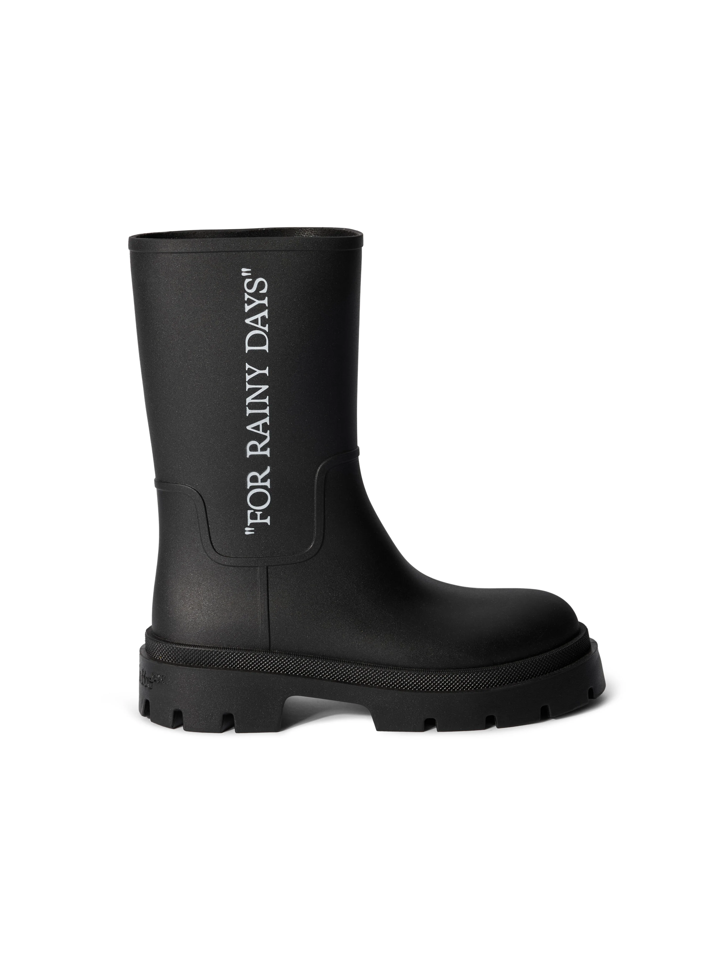 These PVC rain boots feature a signature quote. Made in Italy. MATERIALS Lining: 100% Polyester Sole: 100% PVC Outer: 100% PVC FITTING Model Lee Donggyu wears size 44 Height: 6' 1'' (185 cm) Chest: 33'' (84 cm) Waist: 26” (66 cm) Hips: 33'' (85 cm)
