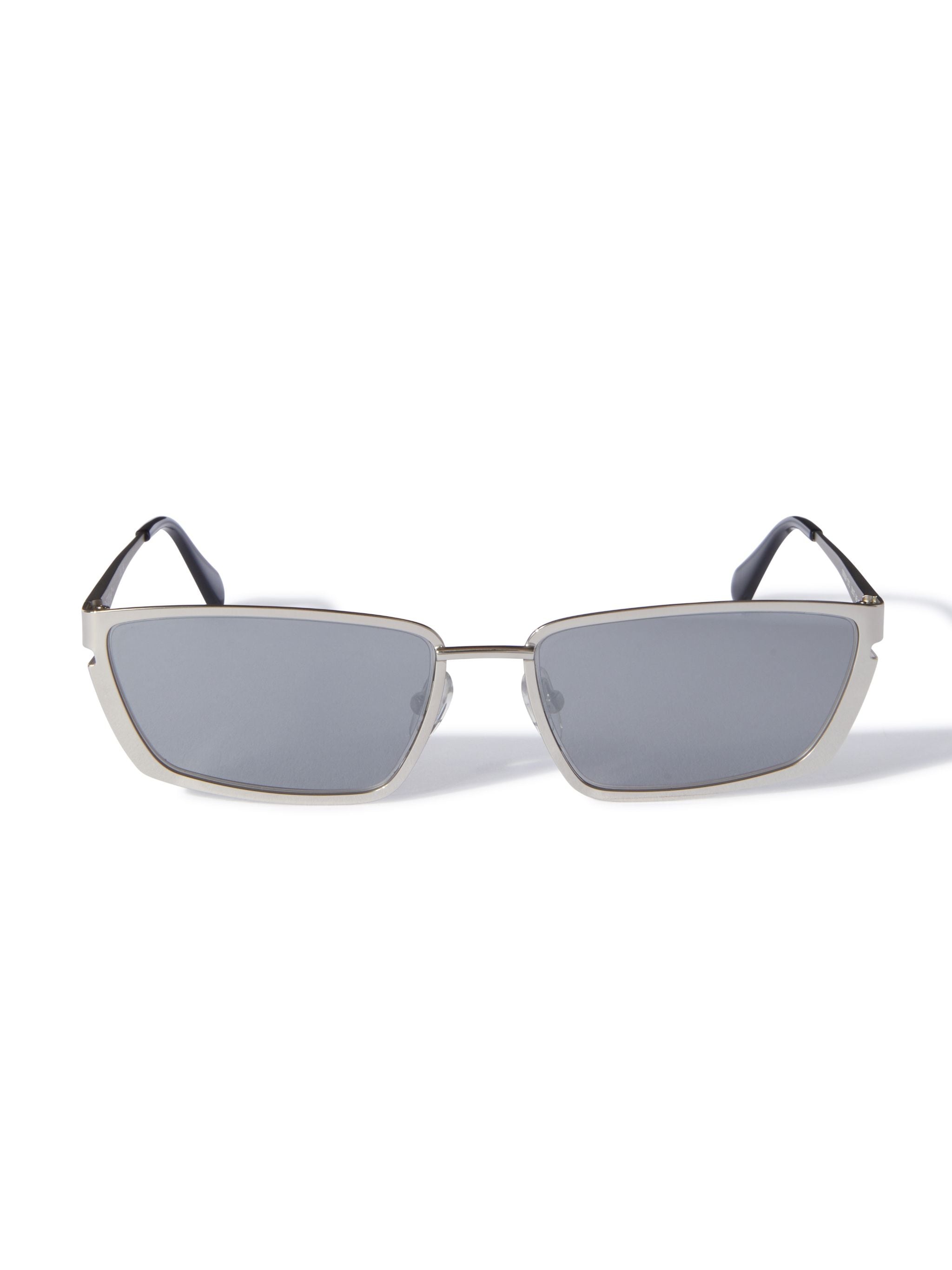 These metal-framed sunglasses feature a Matrix-inspired silhouette with an elongated shape and sharp lenses that overlap the frames. They are completed with cut-out details at the temples and logos engraved on the side-spoilers. Made in Italy. MATERIALS 100% Metal FITTING Bust 0cm Height 0cm Hips 0cm Waist 0cm
