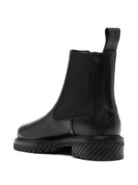 round-toe leather ankle boots Built on a flat rubber sole, these Off-White leather boots are elevated by the signature Diag-stripe pattern. A pull tab at the heel and elasticated side panels hug the ankle for maximum comfort. Highlights - Black - Calf leather - Signature diag-stripe pattern - Round toe - Elasticated side panels - Pull-tab at the heel - Branded insole - Flat rubber sole - Ankle-length - Pull-on style Made in Italy Composition Lining: Leather 100%, Fabric 100% Outer: Calf Leather 100%, Fabric 100% Sole: Rubber 100% SIZE & FIT Measurement HEEL 1.37 in(3.5 cm) HEIGHT 6.29 in(16 cm) Sole height 0.98 in(2.5 cm)
