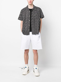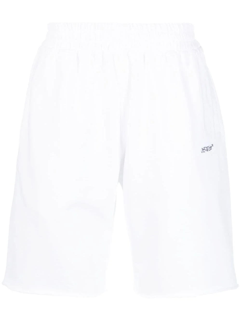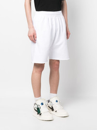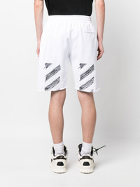 Scribble Diag print track shorts These Off-White track shorts are cut from soft white cotton to a comfortable elasticated waistband. A simple embroidered logo adorns the front, while the brand's signature Scribble Diag motif details the back, nodding to the brand's penchant for bold graphics. Highlights - White/black - Cotton - Embroidered logo to the front - Signature diag-stripe print - Elasticated waistband - Two side slash pockets - Rear welt pocket - Raw-cut finish Made in Italy Composition Cotton 100%, Polyester 100% SIZE & FIT Model measurements Height 6 ft 2 in(1.87 m) Bust/Chest 35.82 in(91 cm) Hips 35.43 in(90 cm) Waist 27.95 in(71 cm) FittingInformation Designed with a wide leg, offering a loose and roomy fit The elasticated waist allows for a comfortable fit Made from a midweight non-stretch fabric, this piece offers minimal elasticity when worn This piece fits true to size – take your usual size Washing instructions Machine Wash