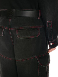 These straight-leg 100% cotton denim jeans feature contrast stitching and cargo pockets. Made in Italy. MATERIALS Lining: 65% Polyester Outer: 100% Cotton Lining: 35% Cotton FITTING Model Lee Donggyu wears size 31 Height: 6' 1'' (185 cm) Chest: 33'' (84 cm) Waist: 26” (66 cm) Hips: 33'' (85 cm)