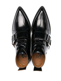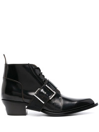 side buckle-detail boots Buckle up; you're going to want to see this. Made from supple black leather, these buckle-detail lace-up boots from Off-White are perfect for changing up your daytime wardrobe. Pair with your favourite baggy jeans for eye-catching statement style. Made in Italy Composition Sole: Leather 100% Lining: Leather 100% Outer: Leather 100%