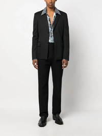 OFF-WHITE MEN OW Embroidered Relaxed Jacket Black Off-White briefly steps away from its streetwear-inspired aesthetic to embrace its timeless side, presenting this tailored blazer. Crafted from black virgin wool, it boasts a classic single-breasted silhouette. Highlights black virgin wool embroidered logo to the front notched lapels front button fastening long sleeves buttoned cuffs jetted chest pocket front flap pockets straight hem Composition Outer: Virgin Wool 100% Lining: Cupro 100%, Viscose 100% Washing instructions Dry Clean Only Wearing The model is 1.85 m wearing size 48