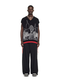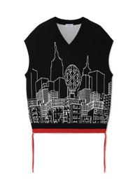 This relaxed fit vest is knitted from a cotton-blend and features a wraparound skyline design with arrow logo. A contrast waistband is completed with tassel details at the hips. Made in Italy. MATERIALS 95% Cotton 5% Polyamide FITTING Bust 90cm Height 186cm Hips 88cm Waist 69cm