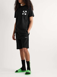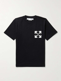 Easily recognisable as the brand's own, Off-White's T-shirt is stamped with a signature arrow logo at the chest. It's cut from comfortable cotton-jersey for a slim fit. Size & Fit - Fits true to size, however those who are between sizes should take the larger size - The model is wearing a size larger to achieve a relaxed fit - This T-shirt is designed for a slim fit - Mid-weight, stretchy fabric - Model wears a L - Model measures: chest 38"/ 96cm, height 6'2"/ 188cm Details & Care - Black and white cotton-jersey - 100% cotton - Machine wash - This item has been imported
