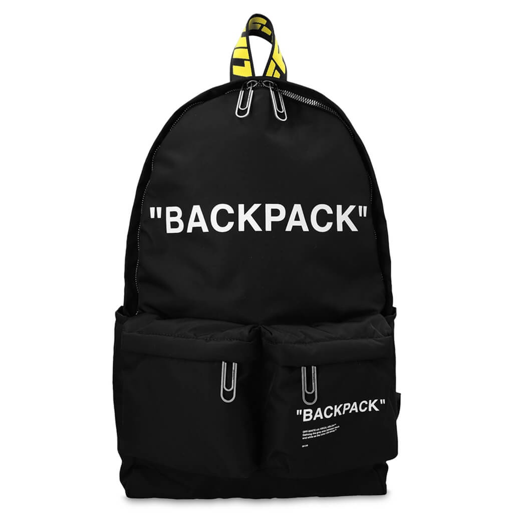 The Off-White Quote Nylon Backpack makes an impression with its blend of leather, polyester, polyamide, and acrylic. The item takes on a printed slogan at the front, while the front zip-fastening compartment and top zip-fastening add a functional touch. The main compartment and single-rounded top handle add additional functionality. The adjustable branded shoulder straps wrap up the remainder of the design. OMNB003F22FAB0041001 - Leather/polyester/polyamide/acrylic blend - Printed phrasing - Zip-fastening compartment - Top zip fastening - Rounded top handle - Adjustable branded shoulder straps - Style No: OMNB003F22FAB0041001