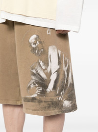 S.Matthew cotton track shorts Highlights - Beige/grey - Cotton - Jersey texture - Graphic print to the front - Elasticated waistband - Two side inset pockets - Straight leg - Knee-length Imported Composition Cotton 100% SIZE & FIT Model measurements Height 6 ft 2 in(1.87 m) Bust/Chest 33.07 in(84 cm) Hips 35.43 in(90 cm) Waist 26.77 in(68 cm) FittingInformation Designed with a wide leg, offering a loose and roomy fit Adjust this piece’s waistband to your preference using the drawstring Made from a midweight non-stretch fabric, this piece offers minimal elasticity when worn This piece fits true to size – take your usual size Washing instructions Machine Wash