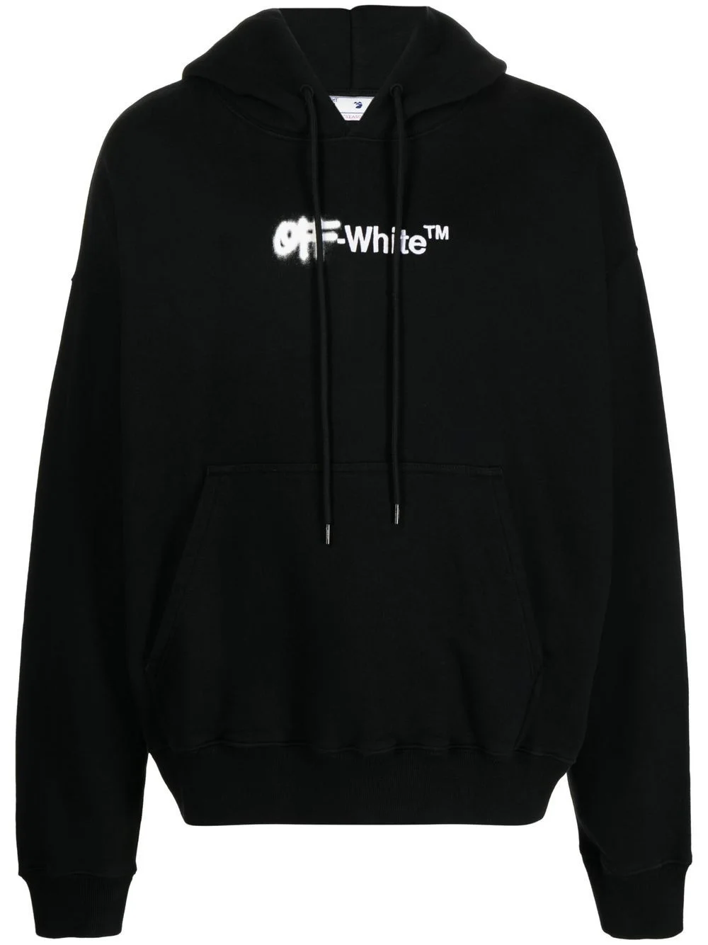 Spray Helvetica logo-embroidered hoodie This minimalist design by Off-White showcases the brand's effortless style. Boasting a relaxed cut, this hoodie is decorated by a spray paint iteration of the brand's logo motif, further emphasising the streetwear aesthetic. Imported Composition Body: Cotton 95%, Elastane 5% SIZE & FIT Model measurements Height 6 ft 2 in(1.87 m) Bust/Chest 34.25 in(87 cm) Hips 36.22 in(92 cm) Waist 29.52 in(75 cm) FittingInformation This piece fits true to size. We recommend you get your regular size Cut for a loose fit Made with a mid-weight fabric Washing instructions Machine Wash