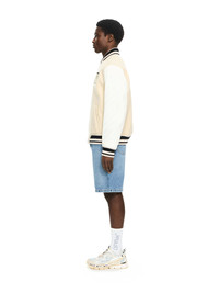 The Star Logo Leather Wool Varsity Jacket features a distinctive design with bold star emblems. Crafted from premium materials, it combines classic varsity style with contemporary elements. - Star logo detailing - Leather and wool construction - Varsity jacket category DETAILS - Fabric: 70% Wool, 27% Polyamide, 3% Polyester - Code: 44XJA122S26L002110