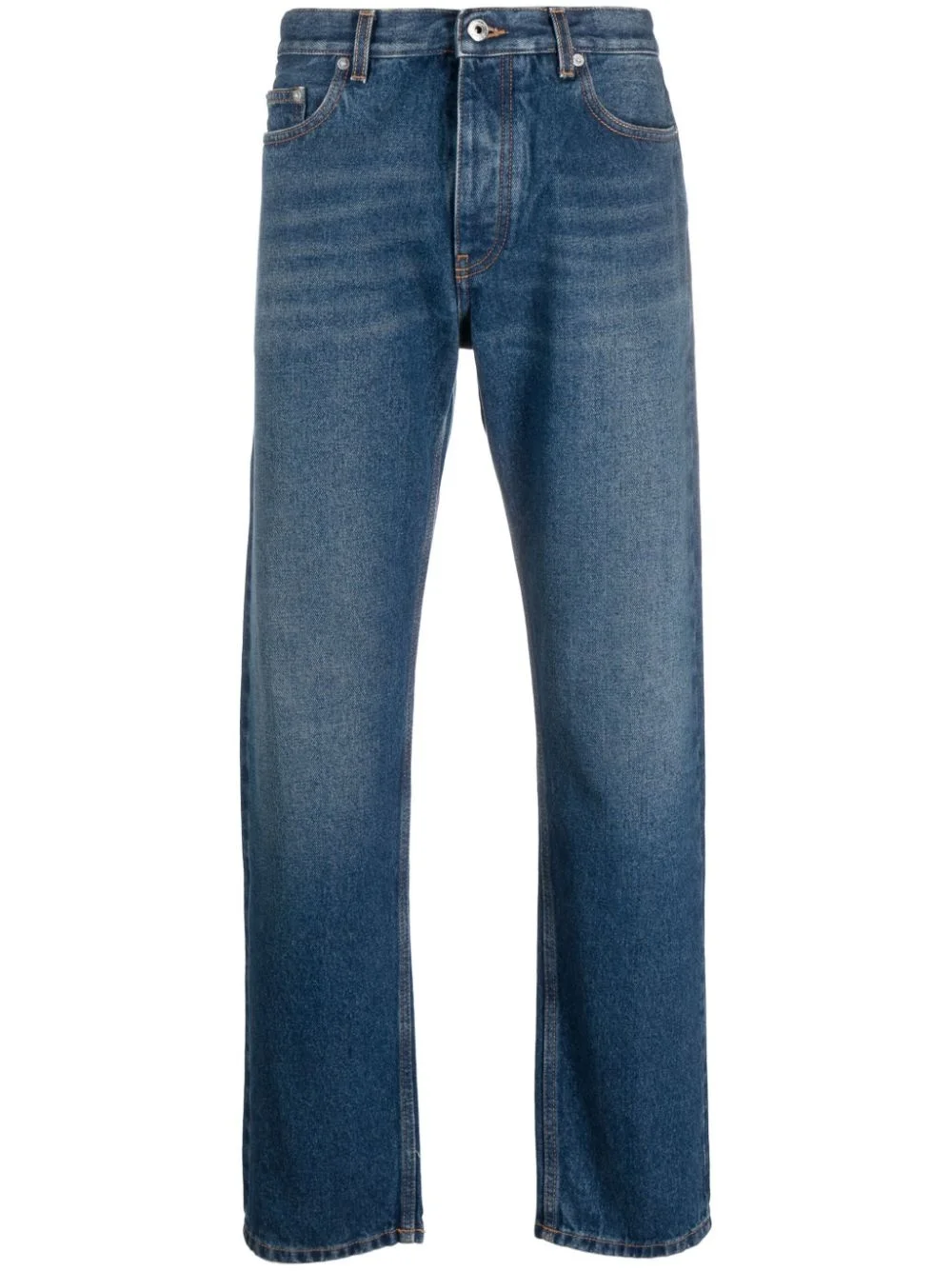 stonewashed straight-leg jeans Off-White is renowned for its ability to give simple designs a refined aesthetic through the addition of logo prints and motifs. These jeans are presented in an understated stonewashed blue colourway and are elevated due to the Arrows logo patch at the rear. Highlights - Blue - Cotton - Mid wash - Stonewashed - Button fly fastening - Belt loops - Classic five pockets - Straight leg Made in Italy Composition Lining: Polyester 65%, Cotton 35% Outer: Cotton 100% SIZE & FIT Model measurements Height 6 ft 2 in(1.89 m) Bust/Chest 37.79 in(96 cm) Hips 37 in(94 cm) Waist 29.92 in(76 cm) FittingInformation Designed for a straight-leg, allowing for an unrestricted and comfortable fit over the leg Sturdy and hard-wearing, this denim piece offers no stretch This piece fits true to size – take your usual size Washing instructions Machine Wash