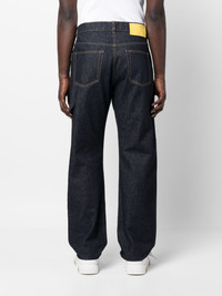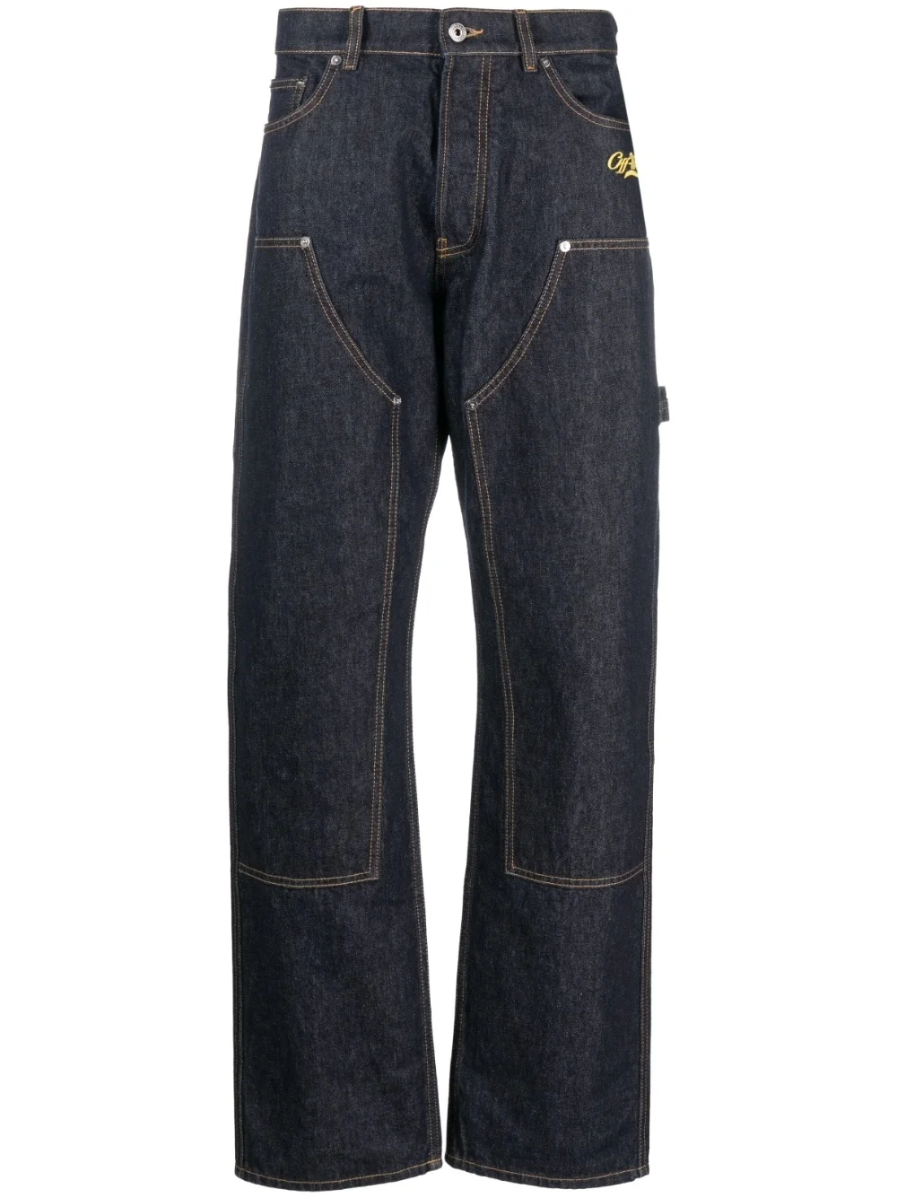 contrast-stitching straight jeans Off-White showcases its signature relaxed aesthetic with these straight-leg jeans, subtly adorned with contrast stitching in a panelled design for SS23. Highlights - Indigo blue - Cotton - Contrast stitching - Mid-rise - Logo patch to the rear - Belt loops - Front button and zip fastening - Straight leg Made in Italy Composition Cotton 100% SIZE & FIT Model measurements Height 6 ft 0 in(1.84 m) Bust/Chest 35.82 in(91 cm) Hips 37 in(94 cm) Waist 28.34 in(72 cm) FittingInformation Designed for a tapered leg, these jeans allow a loose unrestricted fit over the leg with a closer fit towards the ankle Sturdy and hard-wearing, this denim piece offers no stretch This piece fits true to size – take your usual size