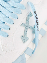 Off-White's sneakers take their cues from '90s basketball and skate styles – founder Virgil Abloh was a big proponent of street culture. This pair is made from canvas with vulcanised rubber outsoles. They're appliquéd with the label's distinctive suede logo and have a signature hanging tag threaded through the laces. Size & Fit - Fits true to size. Take your normal size - European sizing Details & Care - White canvas, light-blue suede - Lace-up - Style number: OMIA085S22FAB0010140 - This item has been imported