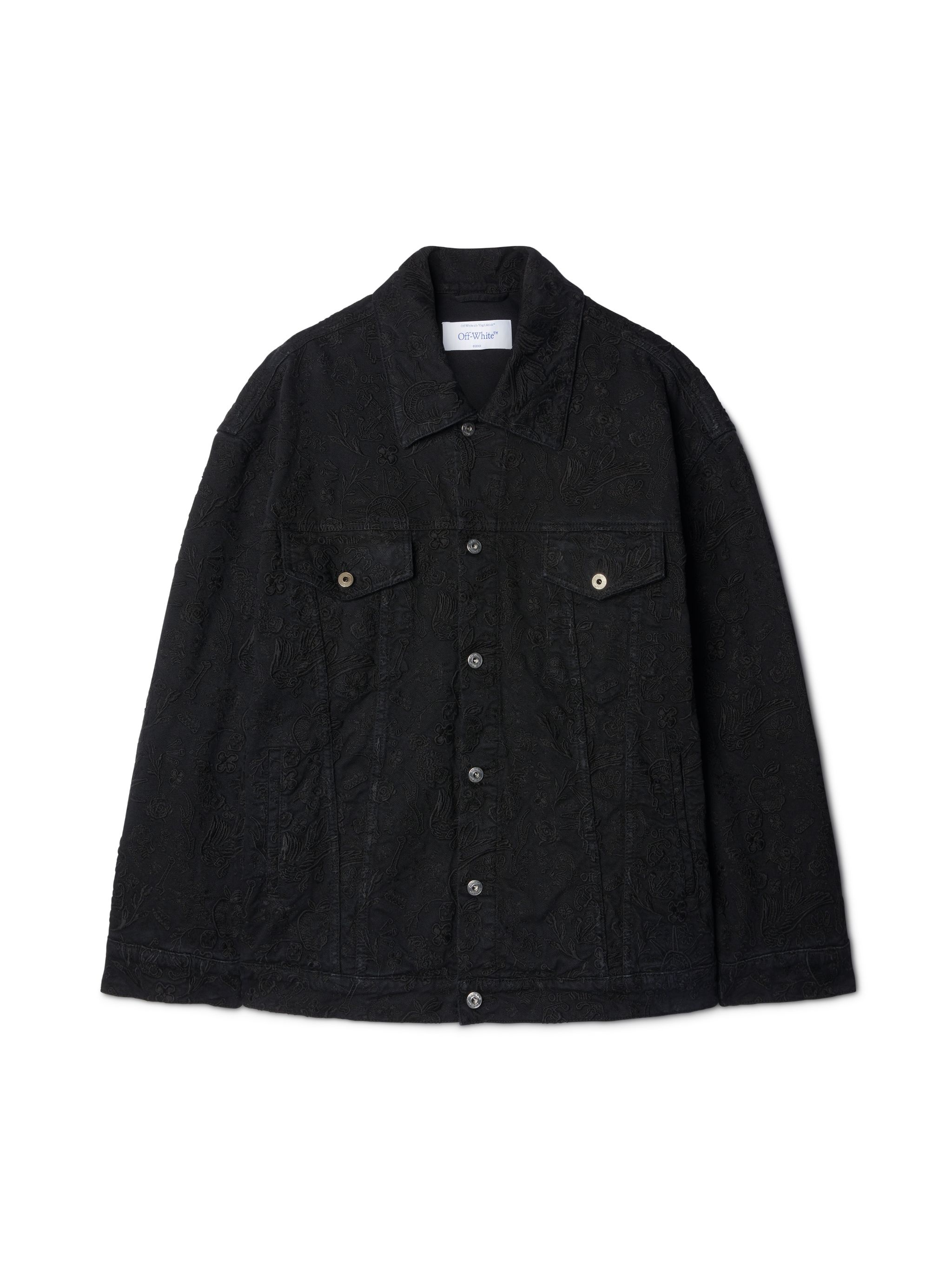 This oversized denim jacket features all-over tattoo-inspired embroidered details. It is made from cotton enriched with elastane. Made in Italy. MATERIALS 2% Elastane 98% Cotton FITTING Bust 0cm Height 0cm Hips 0cm Waist 0cm