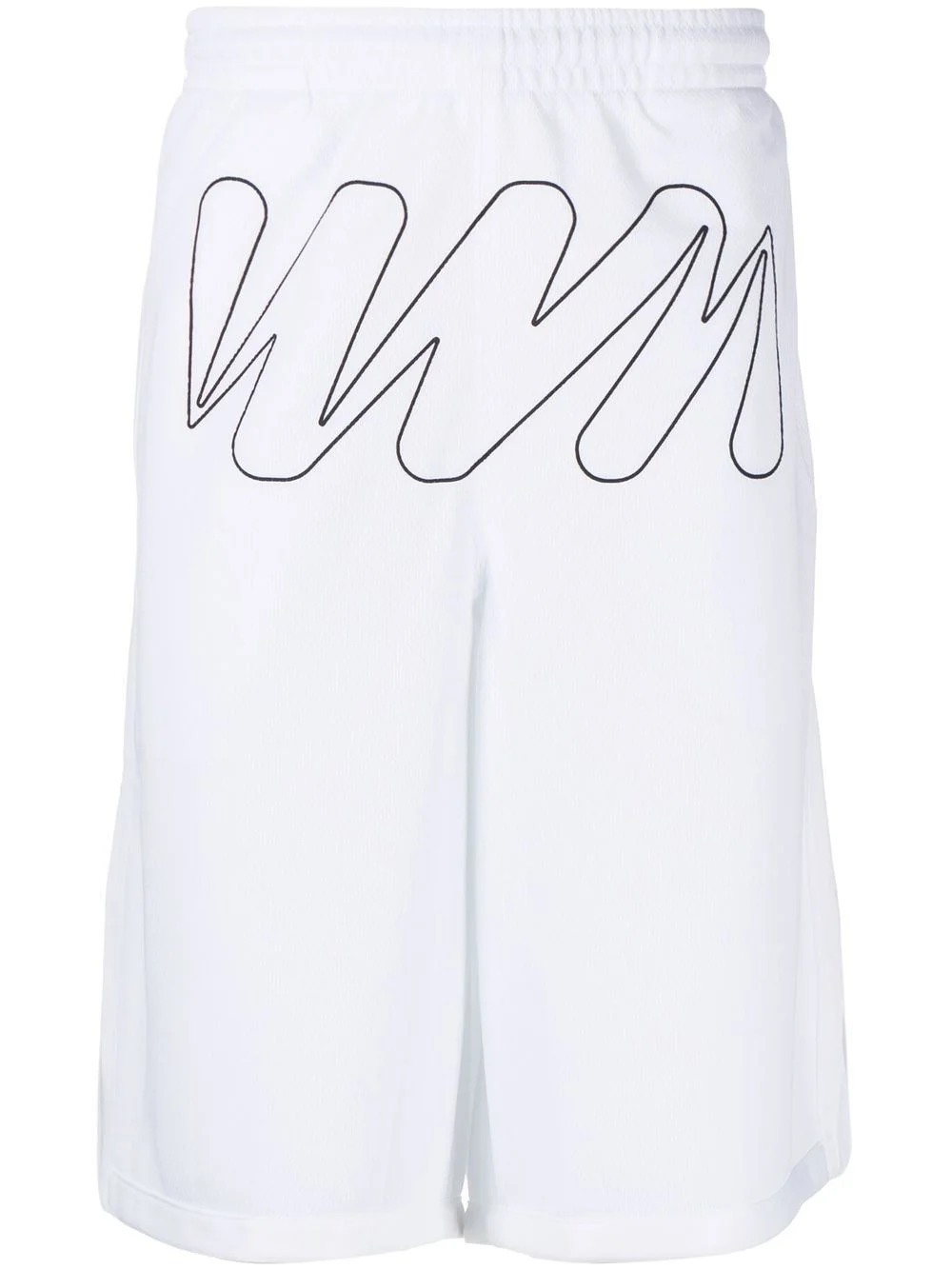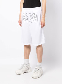 Wave Outl Diagonal mesh shorts Showcasing Off-white's penchant for simplicity, these shorts arrive in a brilliant white shade and are detailed with a contrast Wave outline at the front. They are finished with an elasticated waistband for an adjustable fit, and two side pockets to hold your essentials. Imported Composition Bottoms: Polyester 100% SIZE & FIT Model measurements Height 6 ft 2 in(1.87 m) Bust/Chest 34.25 in(87 cm) Hips 36.22 in(92 cm) Waist 29.52 in(75 cm) FittingInformation This piece fits true to size. We recommend you get your regular size Designed for a slim fit at the waist and loose over the leg Made with a mid-weight fabric Washing instructions Machine Wash