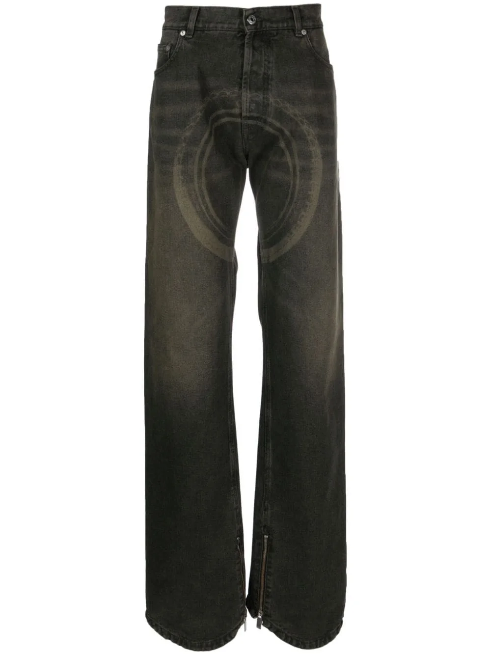 Wheel Over faded jeans Off-White's penchant for industrial details takes centre stage in its AW23 collection, as evidenced in these straight-leg jeans. Fashioned from faded denim, they are adorned with the seasonal Wheel Over print on the front, creating a distinct effect. Highlights - Desert rat brown - Cotton - Denim - Faded effect - Graphic print to the front - Logo print to the front - Belt loops - Concealed fly and button fastening - Classic five pockets - Straight leg Made in Italy Composition Outer: Cotton 100% Lining: Polyester 65%, Cotton 35% SIZE & FIT Model measurements Height 6 ft 2 in(1.88 m) Bust/Chest 34.64 in(88 cm) Hips 33.85 in(86 cm) Waist 27.55 in(70 cm) FittingInformation Designed with a wide leg, these jeans offer a loose and roomy fit Sturdy and hard-wearing, this denim piece offers no stretch This piece fits true to size – take your usual size Washing instructions Machine Wash