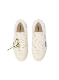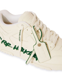 A hybrid of street, basketball and running styles heavily influenced by 90s subculture, these Out Of Office sneakers are constructed with a leather and recycled polyester upper and a rubber sole. This pair features a large signature quote. DETAILS - Material:OUTER:Leather 89%, SOLE:Rubber 100%, LINING:Polyester 18%, OUTER:Recycled Polyester 11%, LINING:Recycled Polyester 82% - Code: OMIA189S25LEA005014A