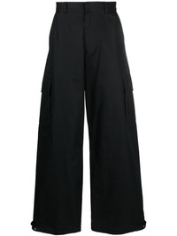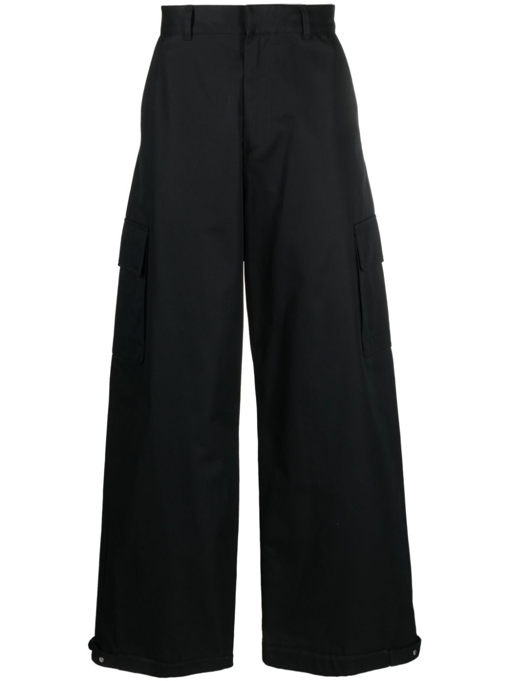wide-leg cotton trousers Streetwear inspirations underpin Off White's collections. Reflecting this, these black cotton trousers are designed with a relaxed, wide-leg silhouette. Highlights - Black - Cotton - Belt loops - Concealed front fastening - Two side flap pockets - Two rear jetted pockets - Straight leg - Wide leg Composition Lining: Cotton 100% Outer: Cotton 100% SIZE & FIT Model measurements Height 6 ft 1 in(1.86 m) Bust/Chest 35.8 in(91 cm) Hips 36.6 in(93 cm) Waist 28.3 in(72 cm) FittingInformation Designed for a straight-leg, allowing for an unrestricted and comfortable fit over the leg Made from a midweight non-stretch fabric This piece fits large – take one size down