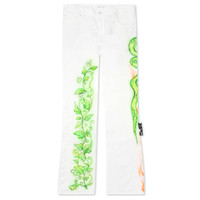 Digital artist aligns with staple elevated streetwear label Off-White in the Babybrush Contour Jeans. Featuring a complete cotton construction, the five-pocket design incorporates a zipper and button fly along with a straight leg fit. A signature logo patch is seen at the waist, while the primary spotlight of the silhouette is the screen-printed graffiti graphics and branding placed throughout the design. FINAL SALE ITEM. NOT ELIGIBLE FOR RETURNS/CANCELLATIONS. OMYA104T21DEN0010184 - 100% cotton - Five-pocket design - Zip/button fly - Straight leg - Logo patch - Screen-printed branding - Screen-printed graphics - Style No: OMYA104T21DEN0010184
