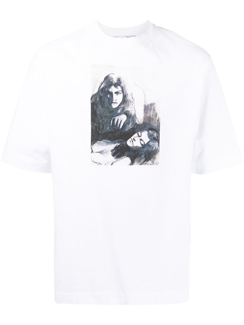 White cotton x Mirko printed T-shirt from OFF-WHITE featuring round neck, short sleeves, photograph print and straight hem. Highlights - White - Cotton - Round neck - Short sleeves - Photograph print - Straight hem Made in Italy Composition Cotton 100%