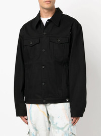 x Neen embroidered denim jacket Off-White presents this black denim jacket in collaboration with Chicago-based street artist Neen. Blending a workwear aesthetic with their mutual appreciation for cutting-edge street style, the piece features Neen's contrasting green embroidery to the rear. Made In Italy Composition Body: Cotton 100% SIZE & FIT Model measurements Height 6 ft 2 in(1.88 m) Bust/Chest 38.18 in(97 cm) Hips 37 in(94 cm) Waist 29.92 in(76 cm) FittingInformation This piece fits true to size. We recommend you get your regular size Cut for a relaxed fit Made with a heavyweight non-stretch fabric Washing instructions Machine Wash