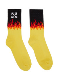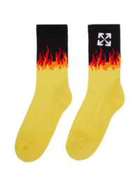 Ankle-high stretch cotton and nylon-blend jersey socks in yellow. · Signature arrow graphic embroidered at rib knit cuff · Jacquard knit graphic in black red and orange at cuff Supplier color: Yellow/White 80% cotton, 15% nylon, 2% elastane.