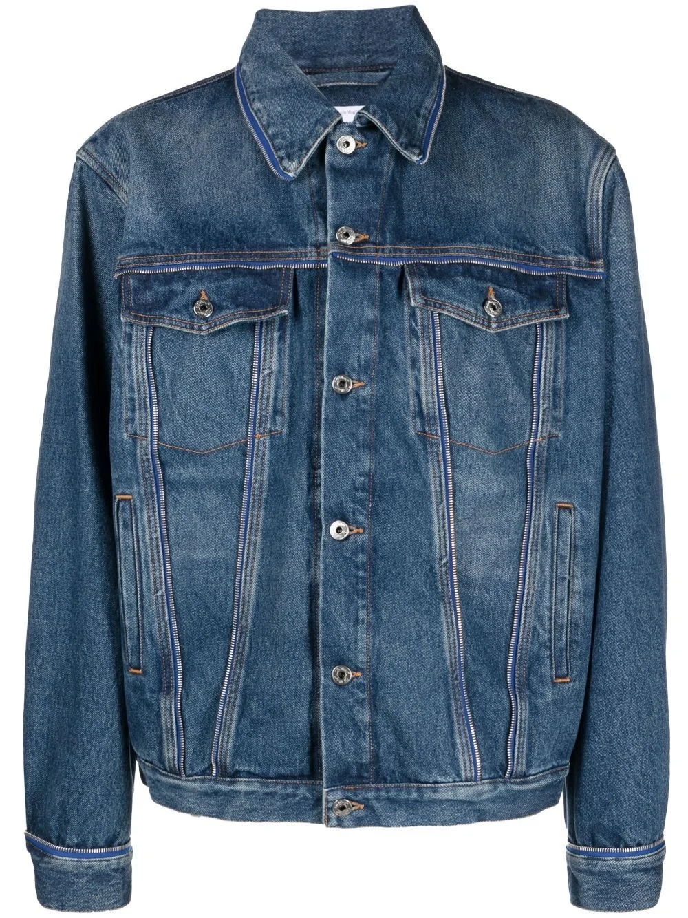 zip-embellishment denim jacket Off-White takes a classic denim jacket and gives it a signature irreverent twist. Crafted from cotton to the quintessential blue colour, this jacket features zip details along the silhouette. A black logo patch also adorns the rear, allowing for a subtle branded touch. Highlights - Blue - Cotton - Denim - Zip details - Logo patch to the rear - Classic collar - Front button fastening - Long sleeves - Two front flap pockets - Two side welt pockets - Straight hem Made in Italy Composition Lining: Polyester 65%, Cotton 35% Outer: Cotton 100%