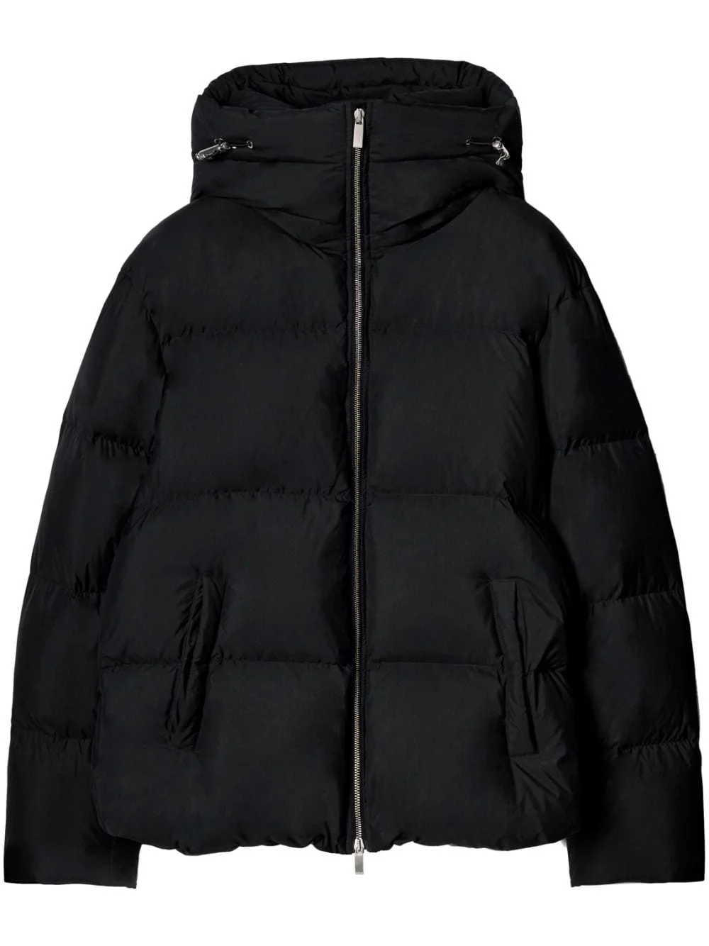 zip-fastening padded jacket Pairing contemporary style with functional design, this Off-White jacket is presented in a monochromatic hue, alongside a fully padded construction. Highlights - Black - Padded design - Funnel neck - Long sleeves Made in Italy Composition Lining: Polyester 100% Outer: Polyester 100%